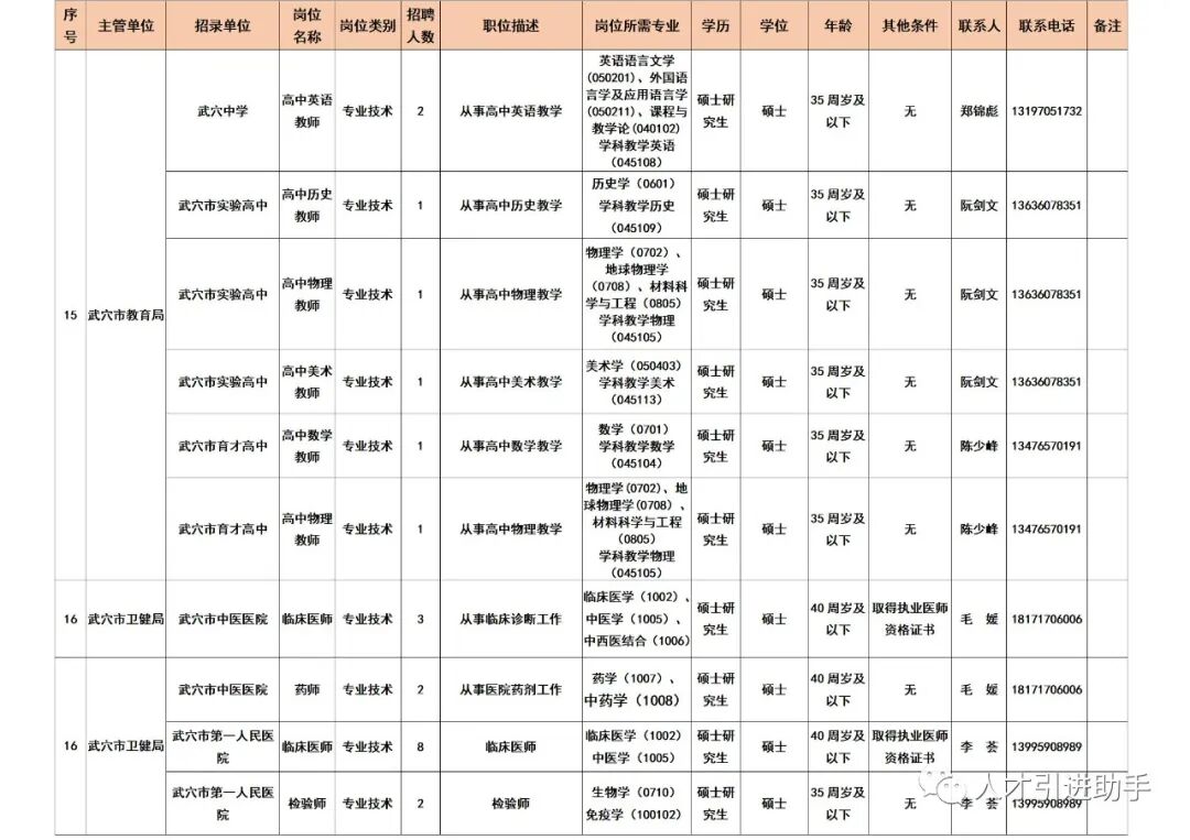 联系电话:0713-6586108(武穴市委组织部人才股)