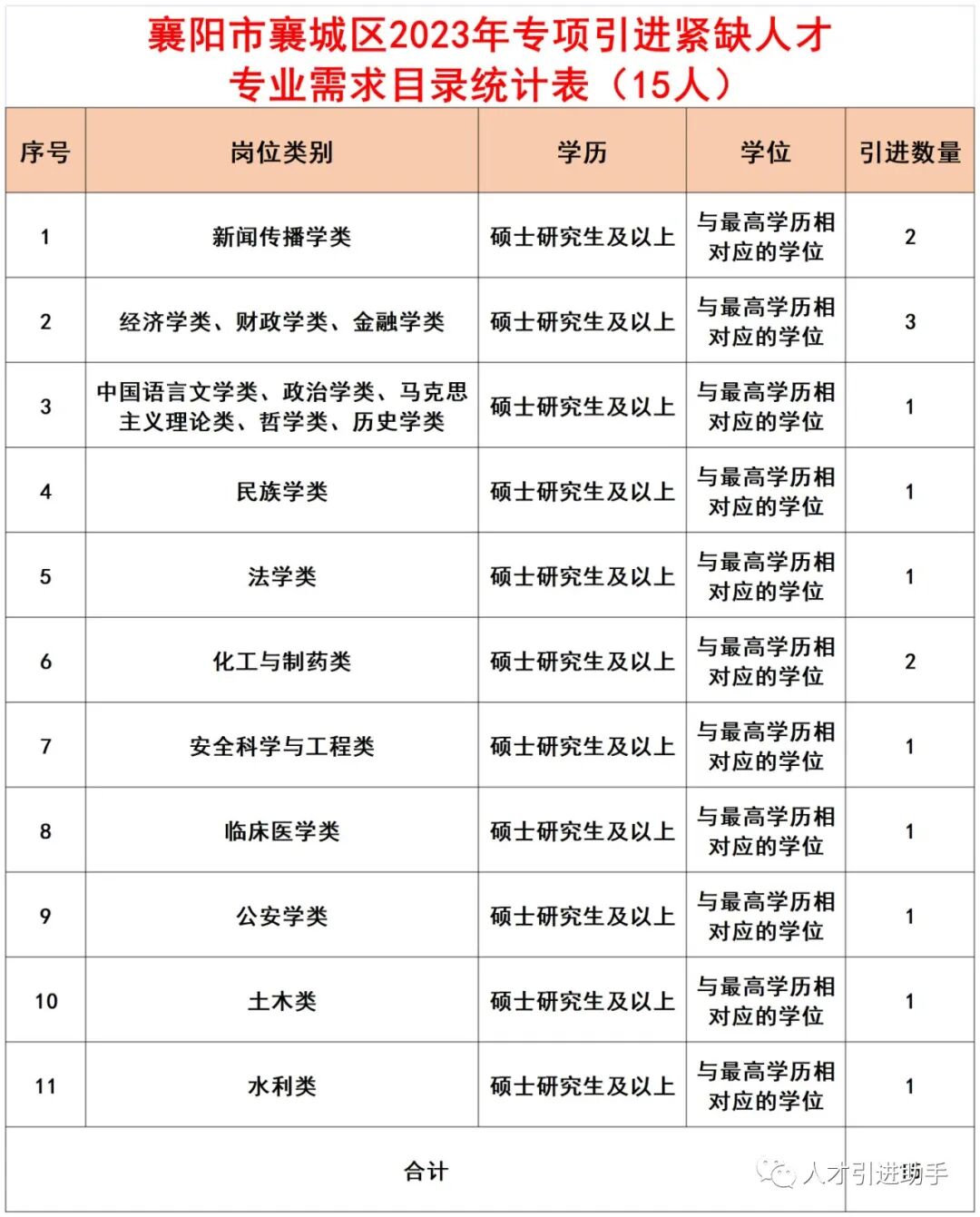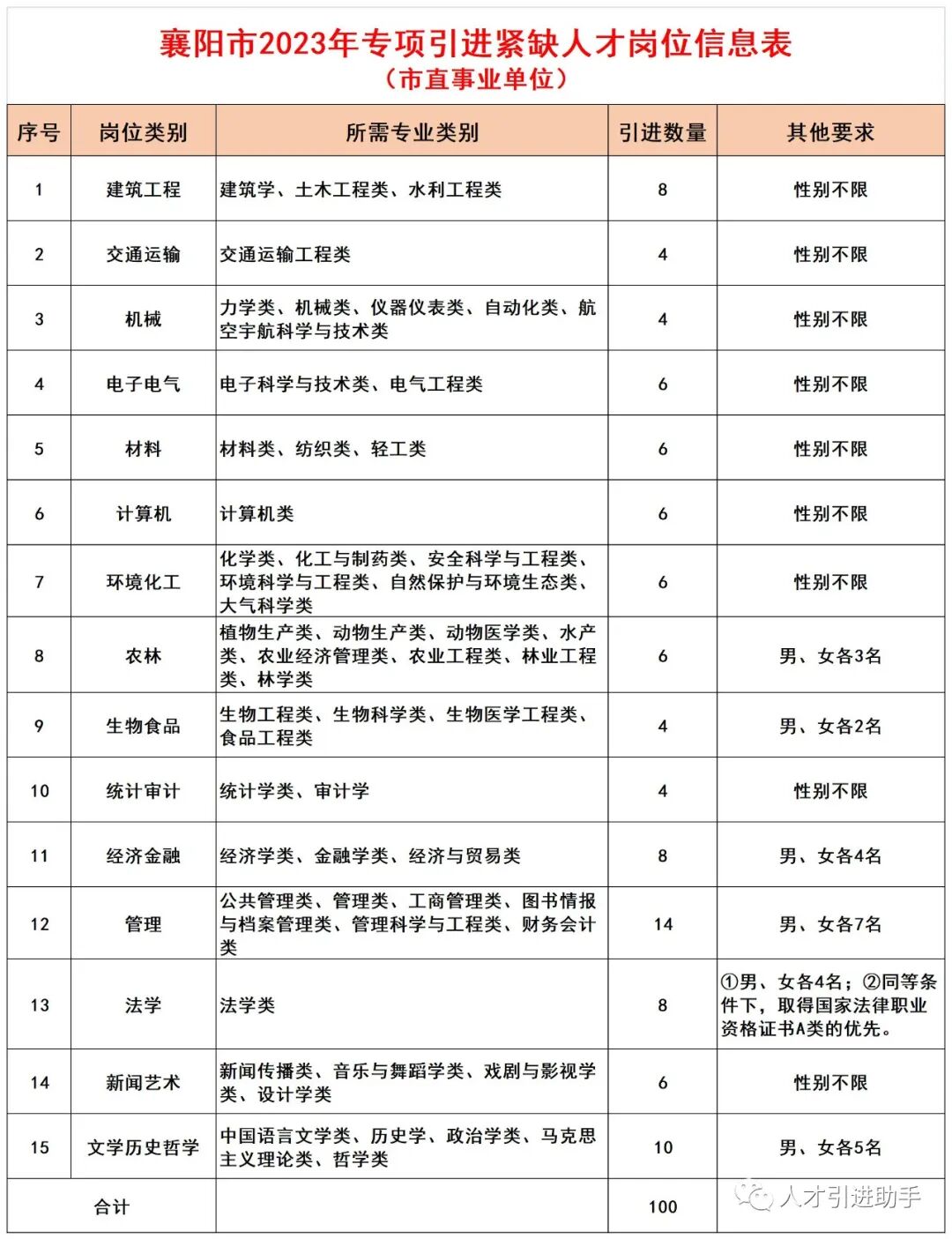 为广聚天下英才,加快推进襄阳都市圈高质量发展,经研究决定,2023年襄阳市将采取市、县(市、区)联动方式,引进一批紧缺专业人才分别到市、县(市、区)所属事业单位工作。现将有关事项公告如下: