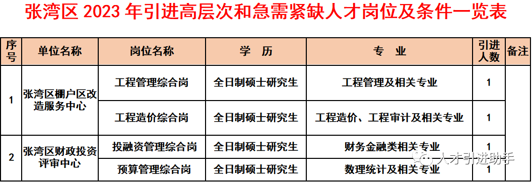 1.张湾区2023年引进高层次和急需紧缺人才岗位及条件一览表