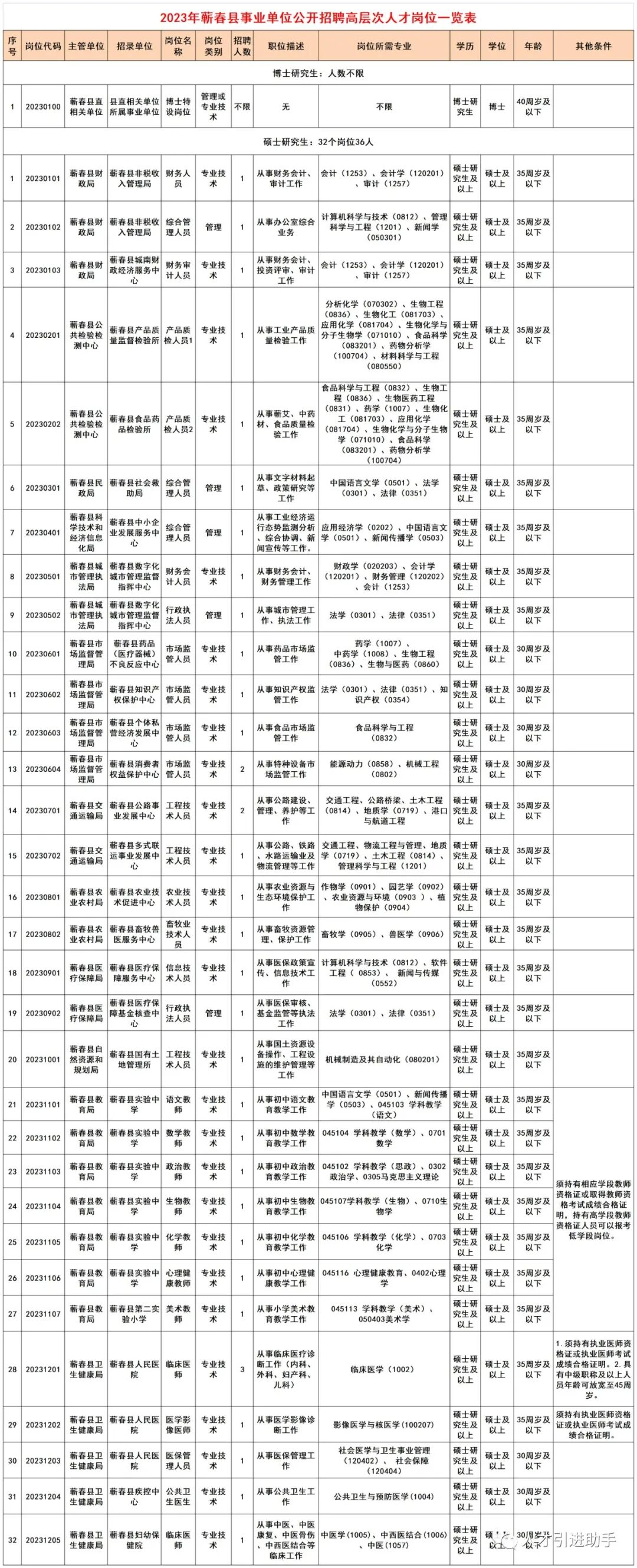为深入实施人才强县战略,加快推进“才聚荆楚·梦圆黄冈 ”计划,为蕲春经济社会发展提供人才智力支撑,根据《事业单位人事管理条例》(国务院令第652号)、《事业单位公开招聘人员暂行规定》(人事部令第6号)和《湖北省事业单位公开招聘工作人员暂行办法》(鄂人〔2003〕16号)等文件精神,经黄冈市人力资源和社会保障局2023年5月29日核准备案,中共蕲春县委组织部(下称“县委组织部”)、蕲春县人力资源和社会保障局(下称“县人社局”)组织县直事业单位面向社会公开招聘一批硕士、博士研究生。