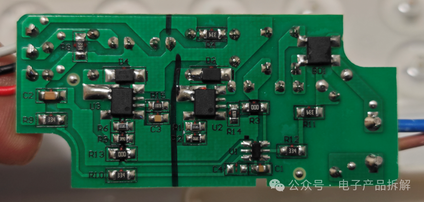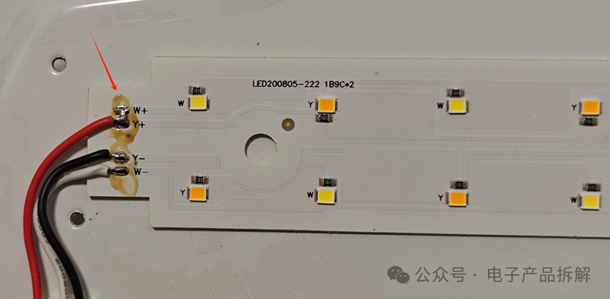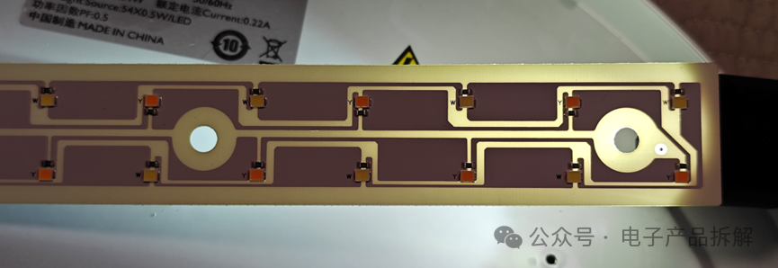 这是第三个板子,打开之后可以看到。确实是阳极连接在一起的。板子上的两种颜色的灯是交错排布的,这样只亮一种色温的时候,看起来会比较均匀。