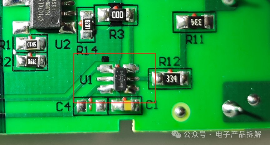 板子上还有一个SOT23-6的器件,丝印是S4223MB,这个器件我根据丝印找到了两个数据手册,不确定哪一个是对的,针对不确定的数据,也不方便展示数据手册内容。