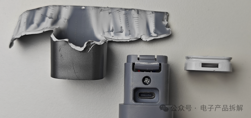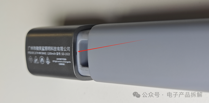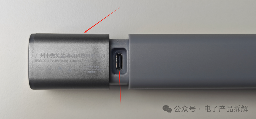 多盘了一会儿,我发现这个头是一个套套,可以往外拔出来一段距离。拔出来之后在脖子这个位置,藏了一个Type-C口,凭着丰富的产品设计经验,我猜这个口是用来充电的。