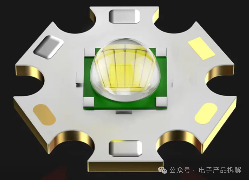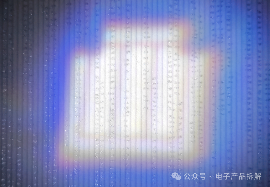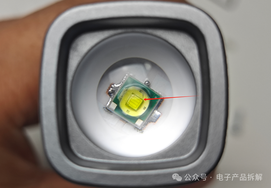 靠近看发现这个光斑是有形状的。仔细观察发现灯珠也是这个形状。