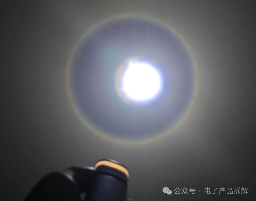 额,光斑是挺大的,手电筒距离墙大概1米左右,光斑的直径也大概是1米左右,相当大气。