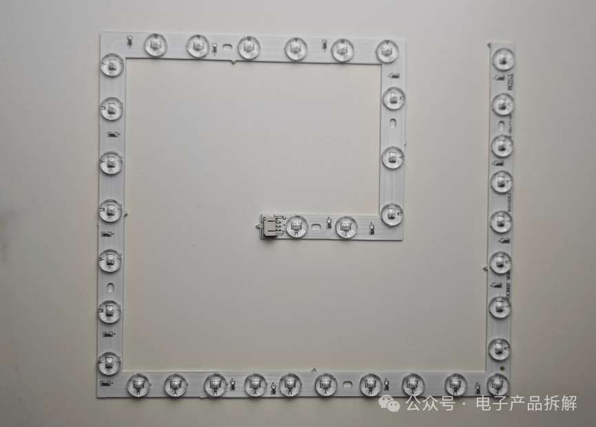 令我惊喜的是,这个灯板居然是铝基板的,这可比上次拆的那个价格更贵的灯里面用的FR-4单面板好多了。