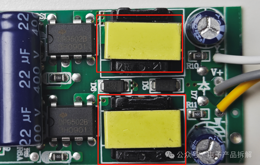 这两个电感就是上图中的DP9502B的Drain极和LED之间的电感。