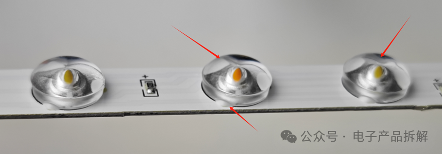 可以看到灯珠是不同色温的交叉摆放,每个灯珠上面一颗小透镜,是用胶固定的,所以就不拆掉啦。