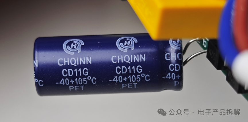 220V输入电压经过二极管整流电路之后输出电压为275V,后面的滤波电容的电压一般会选择400V。这个控制器里用的是22uf,400V的电解电容,这是谁家的电容我找了好久也没找到,有知道的大佬烦请留言告知。