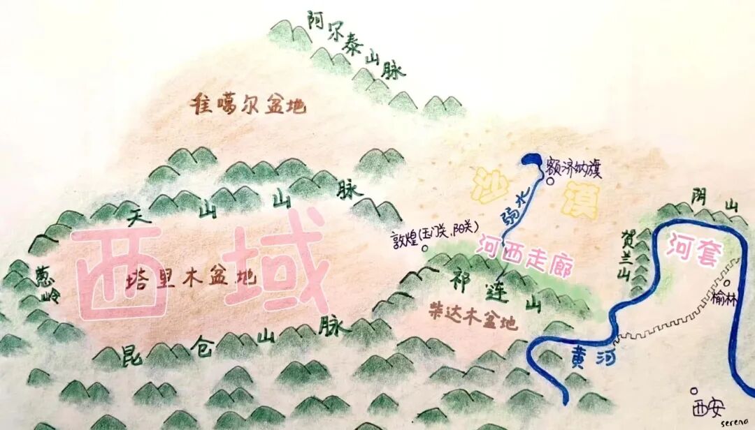咱们先通过Serena大师的作品中,鸟瞰一下本期要讲的三个地理单元——河套、河西走廊&西域。