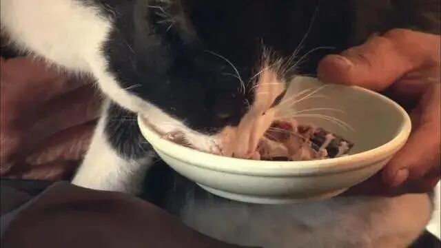 刚开始的时候,亚米像其他流浪猫一样,心存疑虑。每次夫妇俩将食物摆放下后,它才会小心翼翼地出来享用。