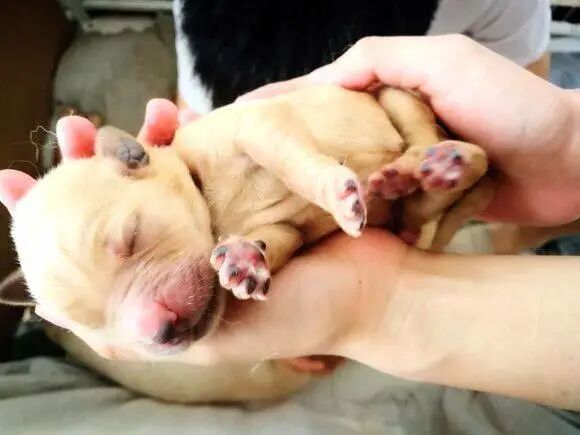 主人不禁大吃一惊,开始怀疑这只小狗是否是金毛的后代。虽然只有一点点毛发,但那明显是金色的。