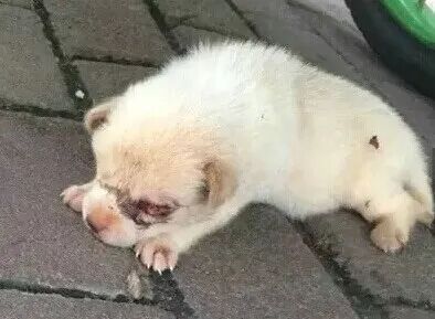 此时的狗狗已经奄奄一息了,可还是对着主人狂吠,好像有什么事情发生了一样...
