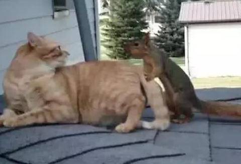 因为猫咪不仅没有欺负小松鼠,还成为了小松鼠的大保镖!