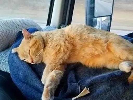 但是每天在车上,这极大的影响了橘猫的身体健康,卡车的震动还有声音令橘猫无法好好休息,所以慢慢橘猫开始变得有点焦躁和虚弱。