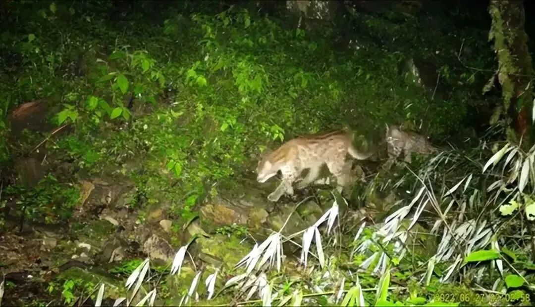 最近,四川平武县老河沟自然保护区工作人员在整理红外相机影像资料时,发现一大一小两只金彪出现在画面中,专家判定这是一对母子,它们此次出来是为了觅食。小金彪跟在母亲后面蹦蹦跳跳,十分活泼开朗。