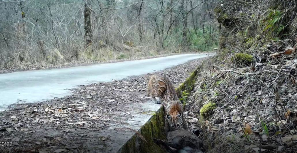 能目睹这样神秘的金彪母子组合在野外活动,对老河沟来说已属难得。今年3月,这里就曾记录过一只金彪成功猎杀一只体型比它大上一倍的毛冠鹿,当时正趴在鹿尸体上大快朵颐的场景也被拍下,使人震惊。