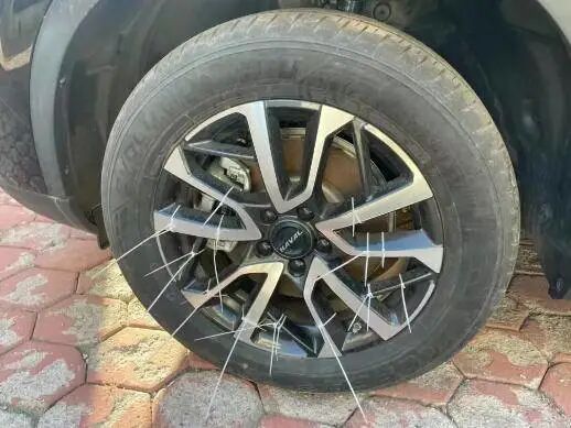 笔者今天就见识到了一个案例,这位车主将尼龙扎带绑到了四个车轮上,尖头向外,看上去就像刺猬的刺一样。