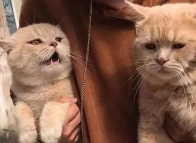有一只橘猫好像看另一只很不爽,开始张开嘴巴说着猫语言的脏话,另一只猫就满脸的沉重,不知道怎么了。