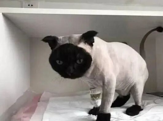 铲屎官嘱咐老板给猫咪修剪一个清凉又好看的造型,然后过了一会,猫咪修剪完了,主人一看,瞬间都懵逼了!