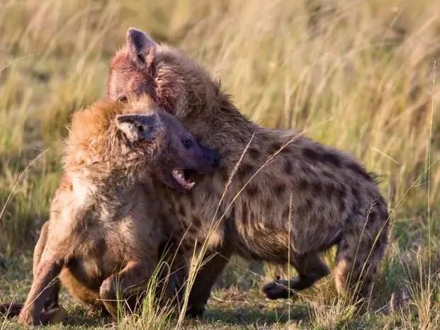 由此可见,母鬣狗完全掌控着交配权,而公狗只能通过讨好母狗来争取交配机会!
