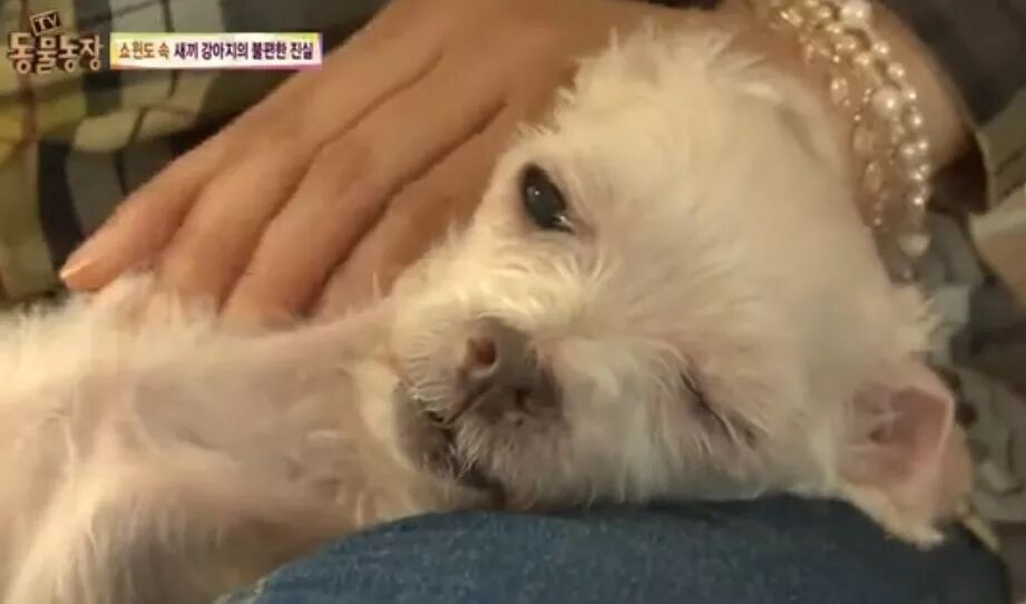 如果不提可能谁也不会发现,这样一只乖巧可爱的狗狗竟然是被当作机器使用的繁殖犬。它的名字叫秀智,是韩国一位好心的人以非常廉价的价格从狗场救助回来的。