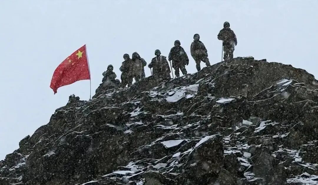 有一群印度士兵,悄悄地爬上了一座远离我军边防哨所的无人区高地山口,嚣张地哈哈大笑着,在那里插上印度的军旗。