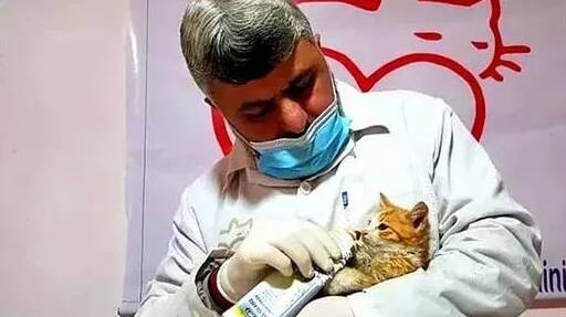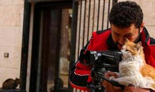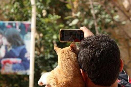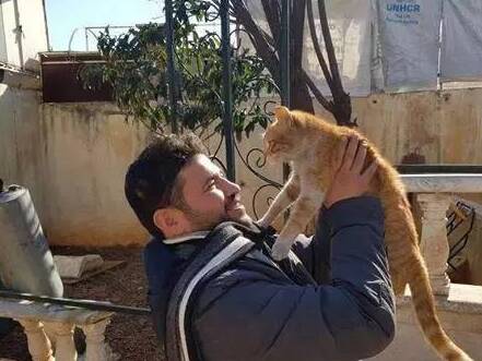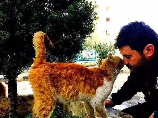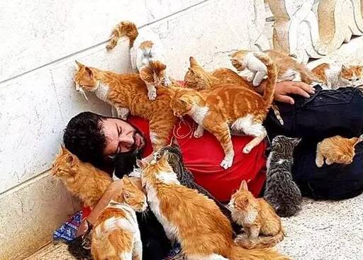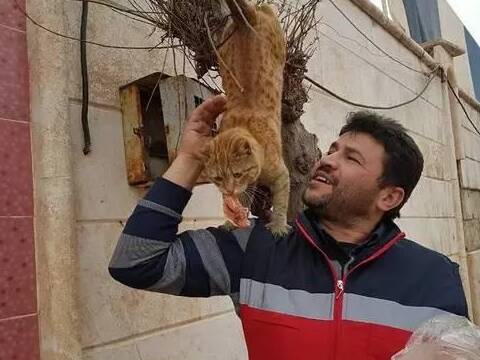 不过,这位大叔却不止是这一只橘猫的主人,因为他救助了很多只猫咪。他生活在充满战乱的土地上,本来他是可以走的,但是,因为他要照顾那些被它救助的流浪猫,所以就选择留下了。
