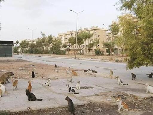 尽管这里处于战乱之中,他依然坚持着。每天他都会去街头,在一些废墟上找流浪猫,这些猫咪曾经是有主人的,但是战乱过后却没有了,于是,他就救助了这些猫咪。