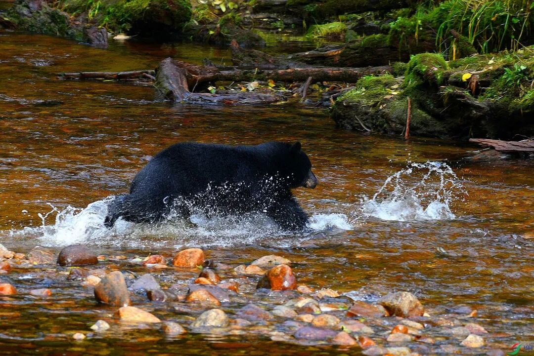 在这片广袤的森林中,黑熊和棕熊在林间悠闲地觅食,而森林狼则在暗处静静观察,寻找下一个猎物。
