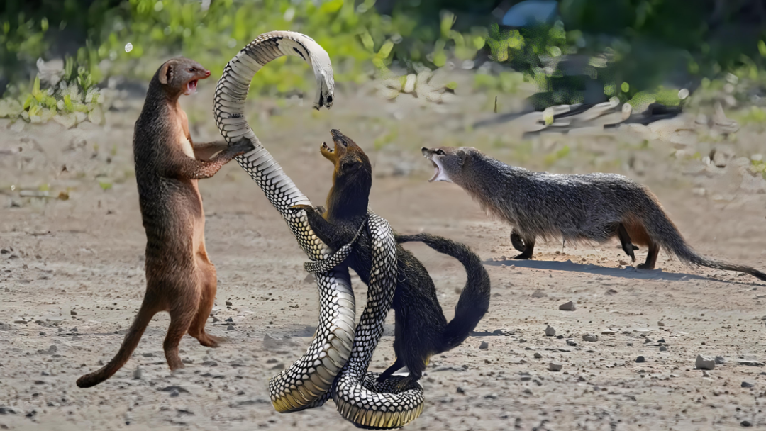 狐獴是一种母系社会结构的动物,通常群体活动,一个群体由2至50只狐獴组成。在捕猎毒蛇时,它们会展现出高效的团队协作能力。通过放哨、预警、围攻等策略,狐獴能够成功捕获并食用毒蛇。