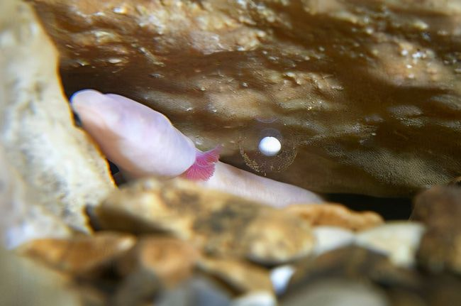 有趣的是,当它们接触到阳光时,皮肤会变为褐色,甚至会出现眼睛,但它们并没有视神经,所以仍然是看不见的。这也是洞螈被称为盲螈的原因。