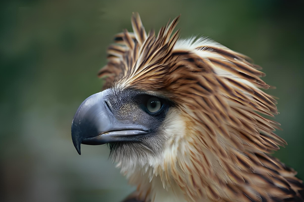 食猿雕,学名为菲律宾雕,是一种体型庞大的鹰科动物,体长超过90厘米,体重可达15斤左右。它们的羽毛以棕褐色为主,腹部覆盖着米白色的羽毛,当它们张开翅膀时,翼展可达2至3米,宛如天空中的霸主。