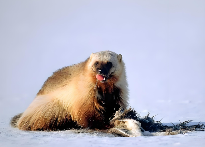 金刚狼的牙齿是它的致命武器,它有38颗牙齿,能轻易嚼烂冻肉和骨头。它的脚掌宽大,适合在雪地上行走。它的爪子锋利如钩,不仅能用来捕猎,还能用来攀爬冰坡。