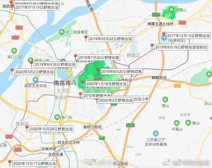 南京多次发生野猪闯入城市区域的事件(图源:新浪江苏)