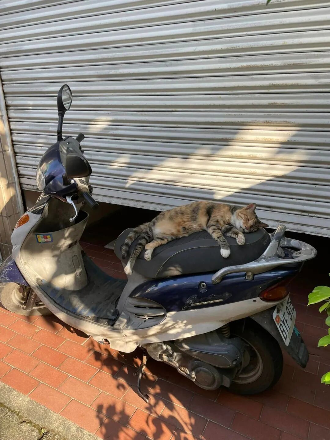 另外,她还分享了这只三花猫在机车座垫上熟睡的照片,看起来确实是个体态正常的猫咪。