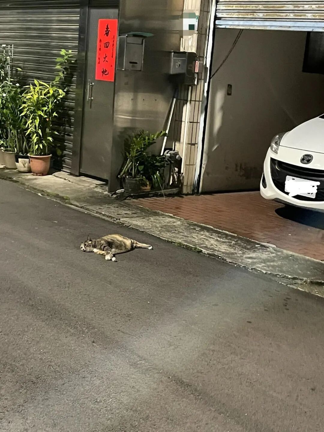 这个新闻是一位网友在脸书社团分享的。她在一户民宅前发现了一滩东西,看起来像是一只体态非常扁平的猫咪。