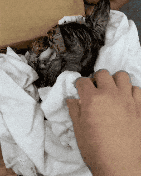 好不容易等到大雨褪去,希望总算是出现了,一名好心的路人将猫咪抱了起来,并用自己的外套将其紧紧包裹着,等回到家之后,再把身上的雨水擦干。