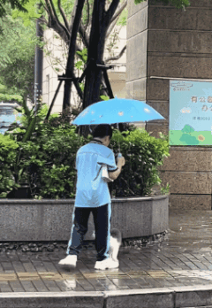 这位善良的小男孩,在大雨中愿意停下来,为正在淋雨的猫咪撑起一片天,时间一分一秒地过去了,小男孩始终不肯离开,因为他知道,只有自己能够为它遮风挡雨;