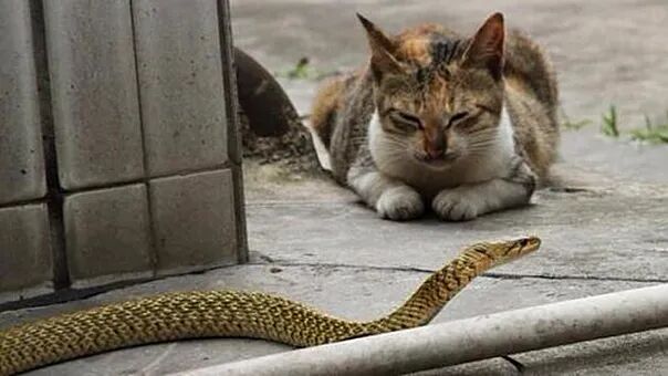 当警告无效时,它们才会与蛇进行斗争。因为在野外,猫知道这些老鼠吃不上也就罢了,晚上回家还有主人喂食,犯不着为了抢食物而与毒蛇冒险。