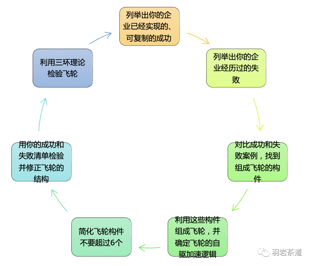 第六步,用你的成功清单和失败清单检验飞轮。你的实际经验是否可以验证它?你需要不断地调整飞轮结构,直到它既能将你最关键的、可复制的成功显而易见地呈现出来,也能将最重大的失败和最明显的痛点清晰地暴露出来。