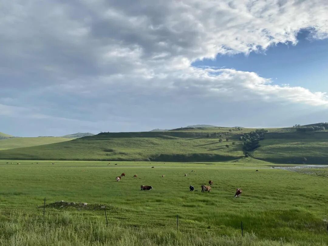 而且这段共同穿越暴风雨和茫茫大草原之后所能获得的情感交融和切身体验更为重要。我们一起欣赏窗外的美景,时不时停下来拍照打卡,和牛羊亲近。当我欣赏着这一片天地时,我会对 ryan说:“你看这……,你看那……”,让他用自己的双眼去欣赏和感受草原之美。