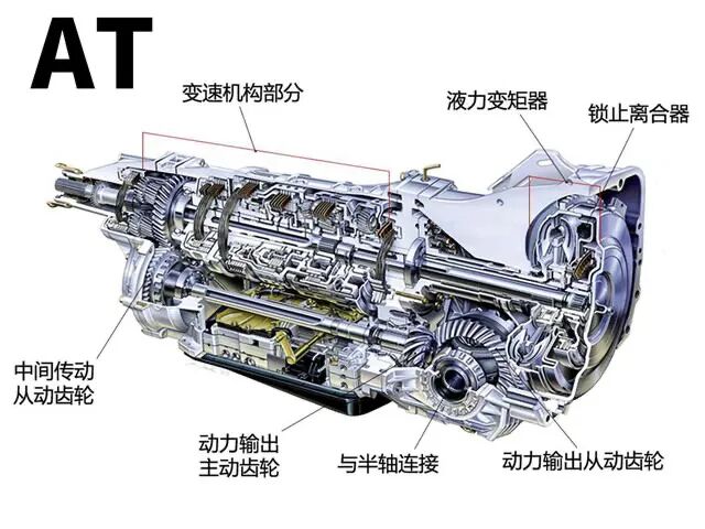 早期的AT自动变速箱是通用汽车给坦克开发的,而二战结束后才开始装在卡迪拉克上。随着技术不断发展,AT变速箱现在它已经非常成熟了。像爱信的6AT、采埃孚的8AT都是非常好的产品。AT包含液力变矩器和变速器两部分。液力变矩器能放大扭矩,相当于是在变速机构之前加了一个减速器,而且它是无极的,转速越低增扭越大。而双离合变速箱只是在变速器的输出端有一个主减速器。这就是AT的低速扭矩优于DCT的根本原因。