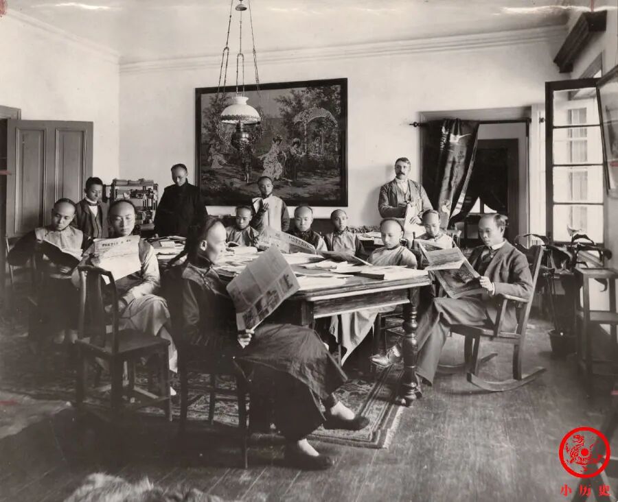晚清时期,在一些大城市,由于商贸逐渐繁荣,作为交流信息的主要方式,报刊获得了前所未有的发展,读报不仅成为知识分子的日常习惯(如照片所示),也成为略通文墨的市民的日常习惯。
