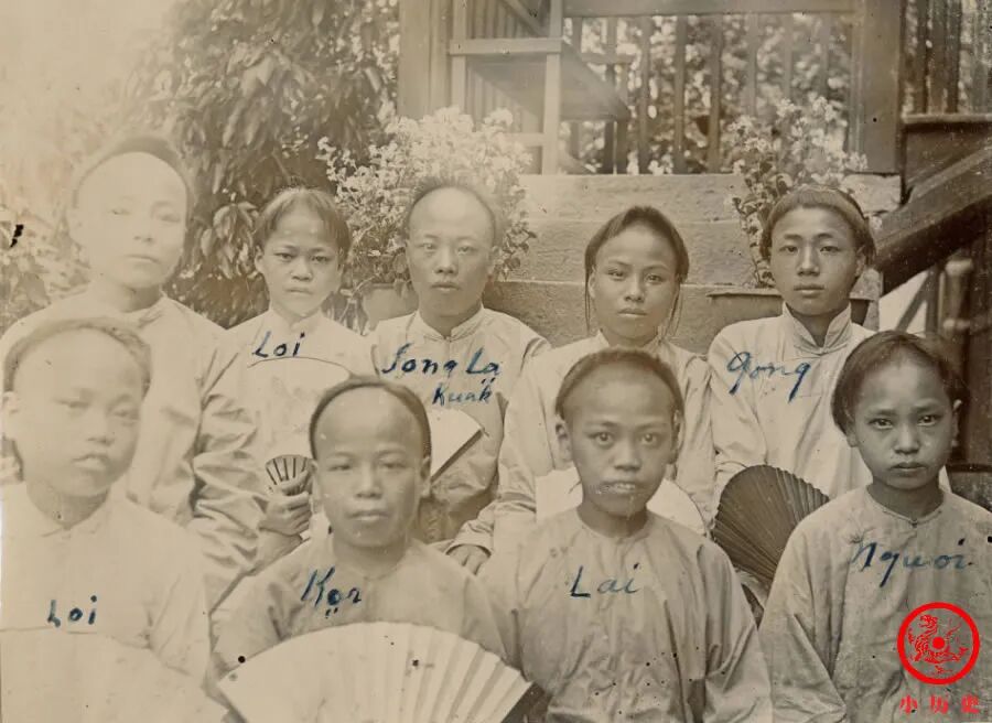 这张照片拍摄于福建某地,时间为1906年10月,学校名为Boys' Boarding School at Ing Hok。摄影师标注了每一个学生的名字(昵称)。他们尚未成年,发型比较随意。
