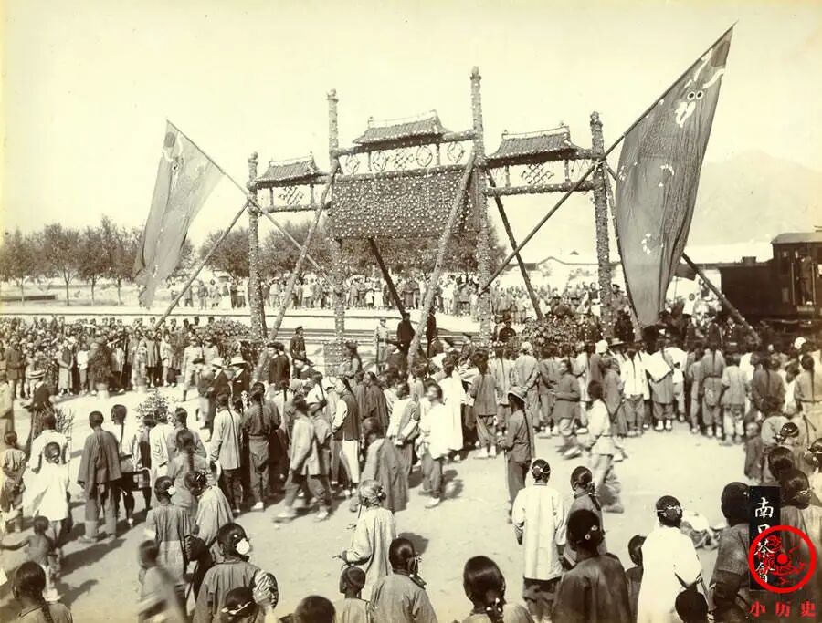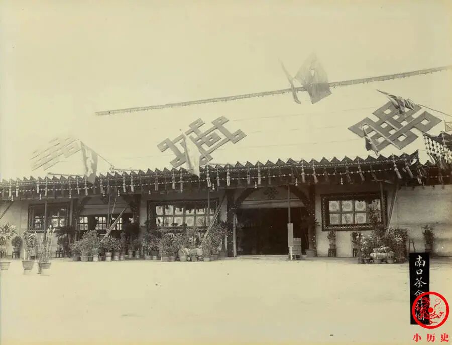 南口茶会设在一个临时搭建的彩棚之内,棚外搭有高耸的牌楼,以松枝和彩花装饰。一时间,南口车站周围彩绸高悬,盆花分列,中外来宾多达万余人。会场内外龙旗飘扬,万头攒动,一片欢腾景象,可谓盛况空前、热闹非凡。