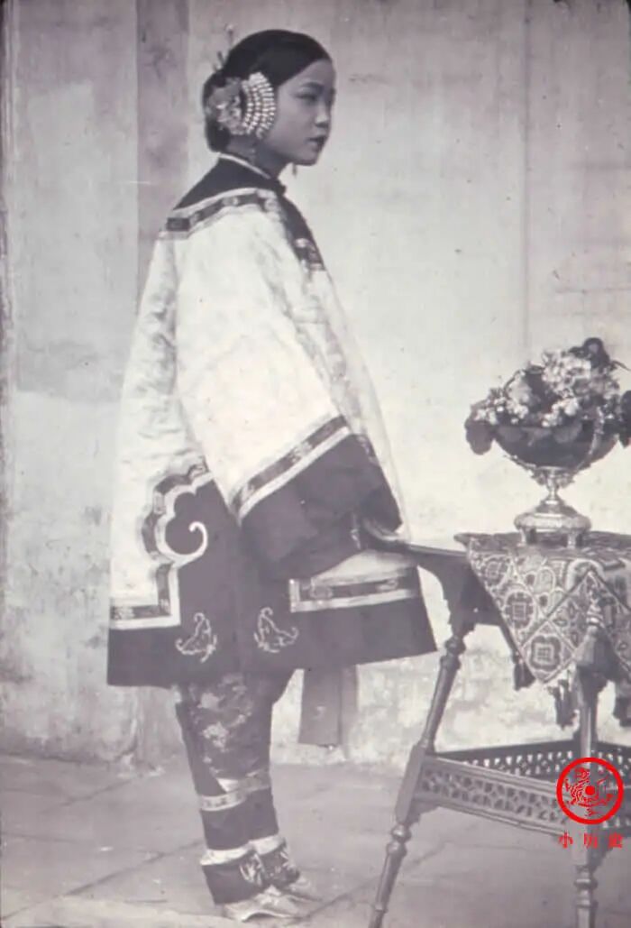 她穿着的袄裤特别肥大,完全掩盖了身材的曲线。还有她的“三寸金莲”,使她看上去颤颤巍巍,不足以支撑体重。说实话,我们可能觉得她这样的形象不好看,但在那个年代属于典型的美女。