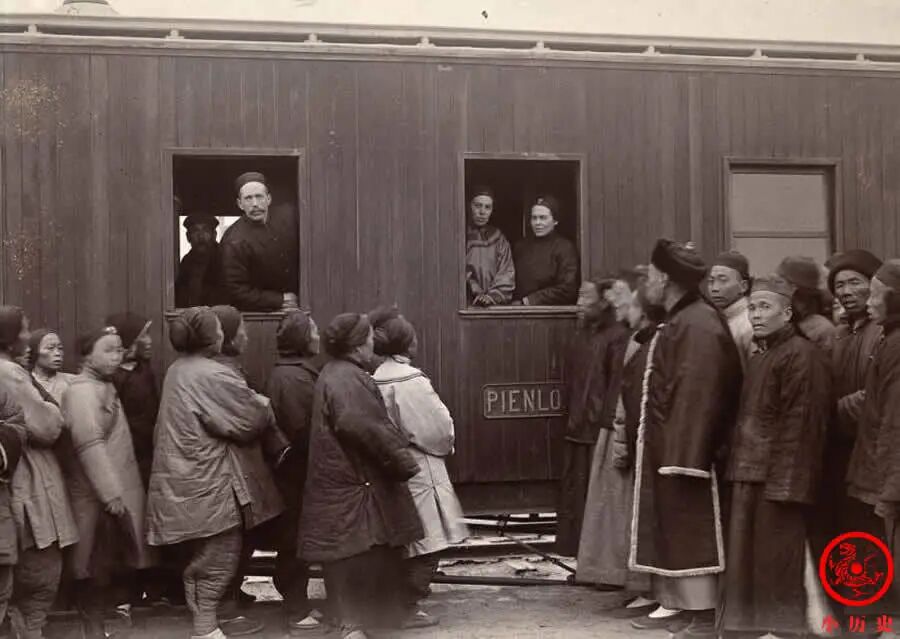 火车车厢里的传教士一家都一身中国装扮,显然已经融入了当地社会。也许他们做了很多慈善事业,受到当地百姓的感念,所以在离开时官民前往送行,有依依不舍之意。