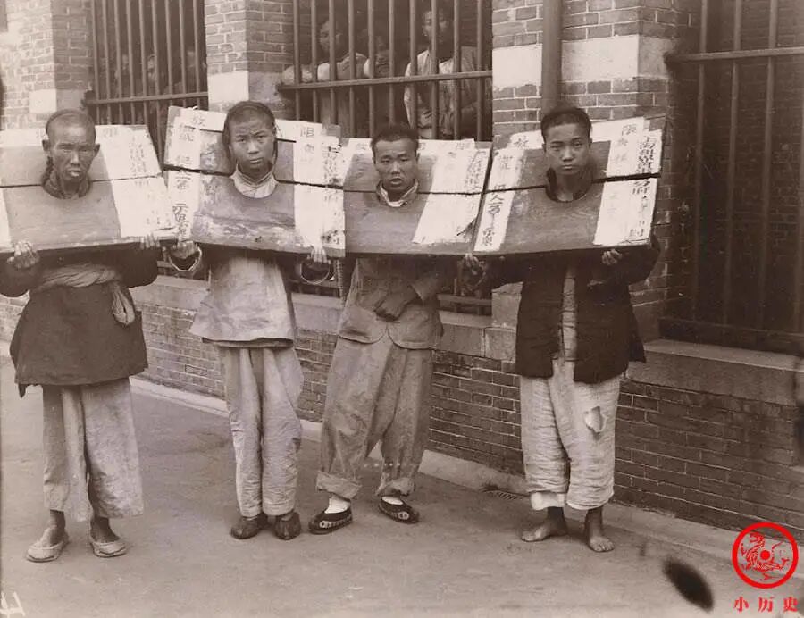 枷板上写着判处他们刑罚的机关——上海租界会审公廨。会审公廨由上海道台任命中方专职会审官(谳员),与外方陪审官(领事)会同审理租界内与华人有关的诉讼案件。如果案件涉及洋人或洋人雇佣的华籍仆人,由外国领事参加会审或观审;纯粹华人案件,由中国谳员独自审断。