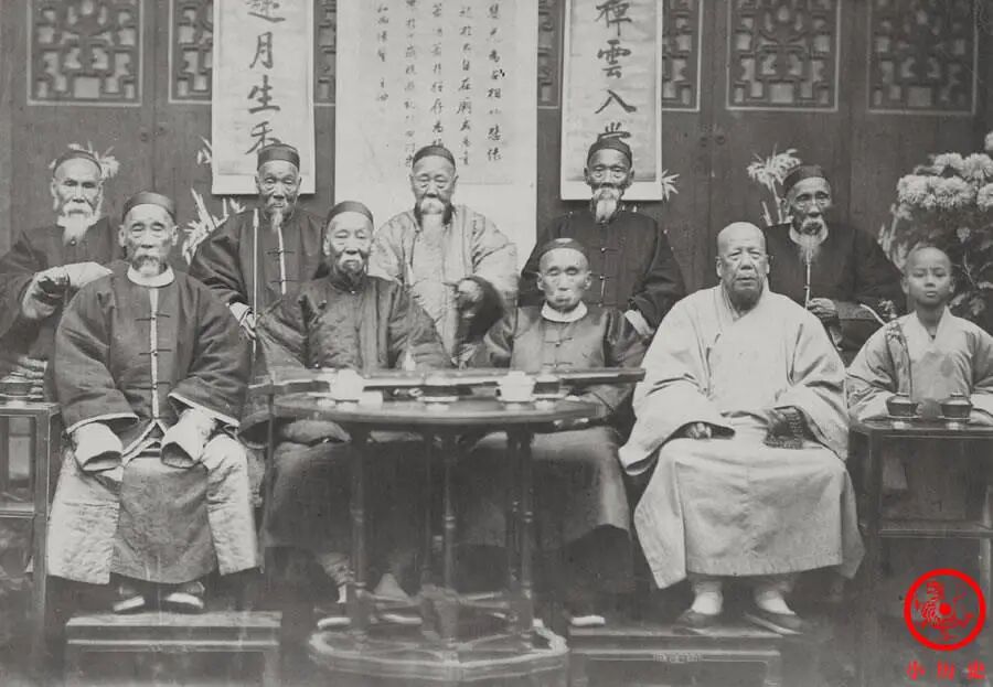 这一群老者是志同道合的朋友,常在一起吟诗作赋、谈禅论道。